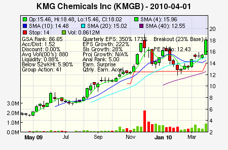 On April 5, 2010 we profiled KMG Chemicals Inc (KMGB) as a Top Stock Pick